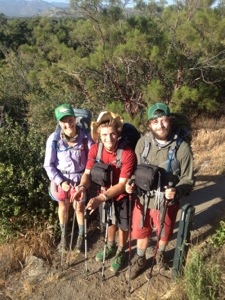 We got through our first two days in one piece (more or less)! Despite the expected aches, pains and soreness throughout the majority of our bodies, all three of us have been considerably lucky with blisters and other ailments of that sort. The biggest obstacle we are encountering is heat, which reaches high 80’s during the daytime. The other challenge has been lack of water. We went 20 miles the first day without any water sources and today was a similar situation. We have all been eating voraciously, in part to lighten our packs, but for the most part we are just so darn hungry all the time. Overall, morale is good as we learn the ins and outs of life on the trail.