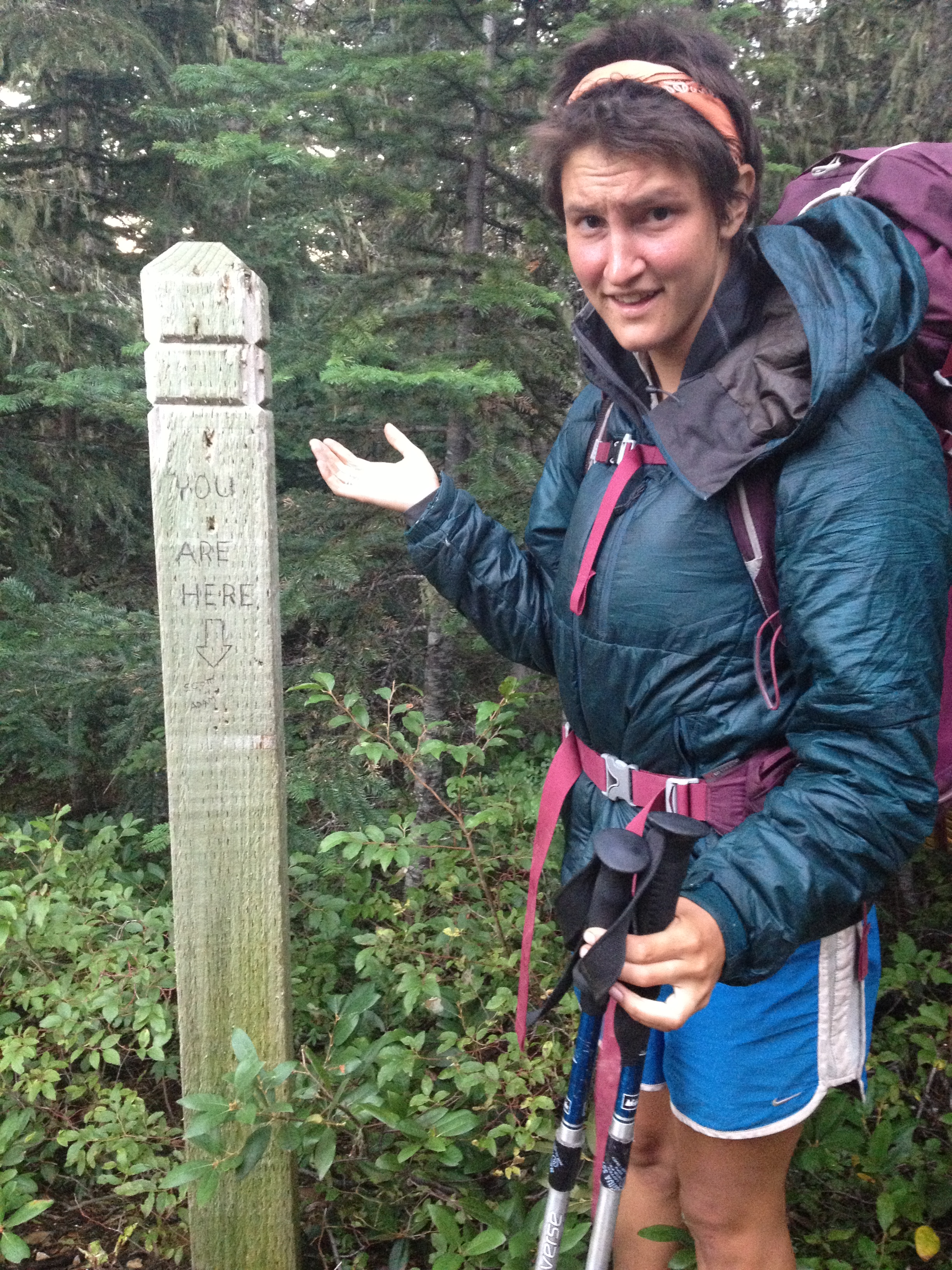 Constant moisture is another adjustment that we are trying to get used to. From White Pass to Snoqualmie, there was almost constant drizzle, rain or mist. Since our sleeping bags and warmest layers are down, and down becomes worthless when wet, it has become our biggest challenge to protect those feathery essentials from the Washington’s autumn dampness. Other harbingers of fall have been the slow transition of green to red in the trees and bushes lining the trail, and the crisp, cold smell that is distinct to this time of year.