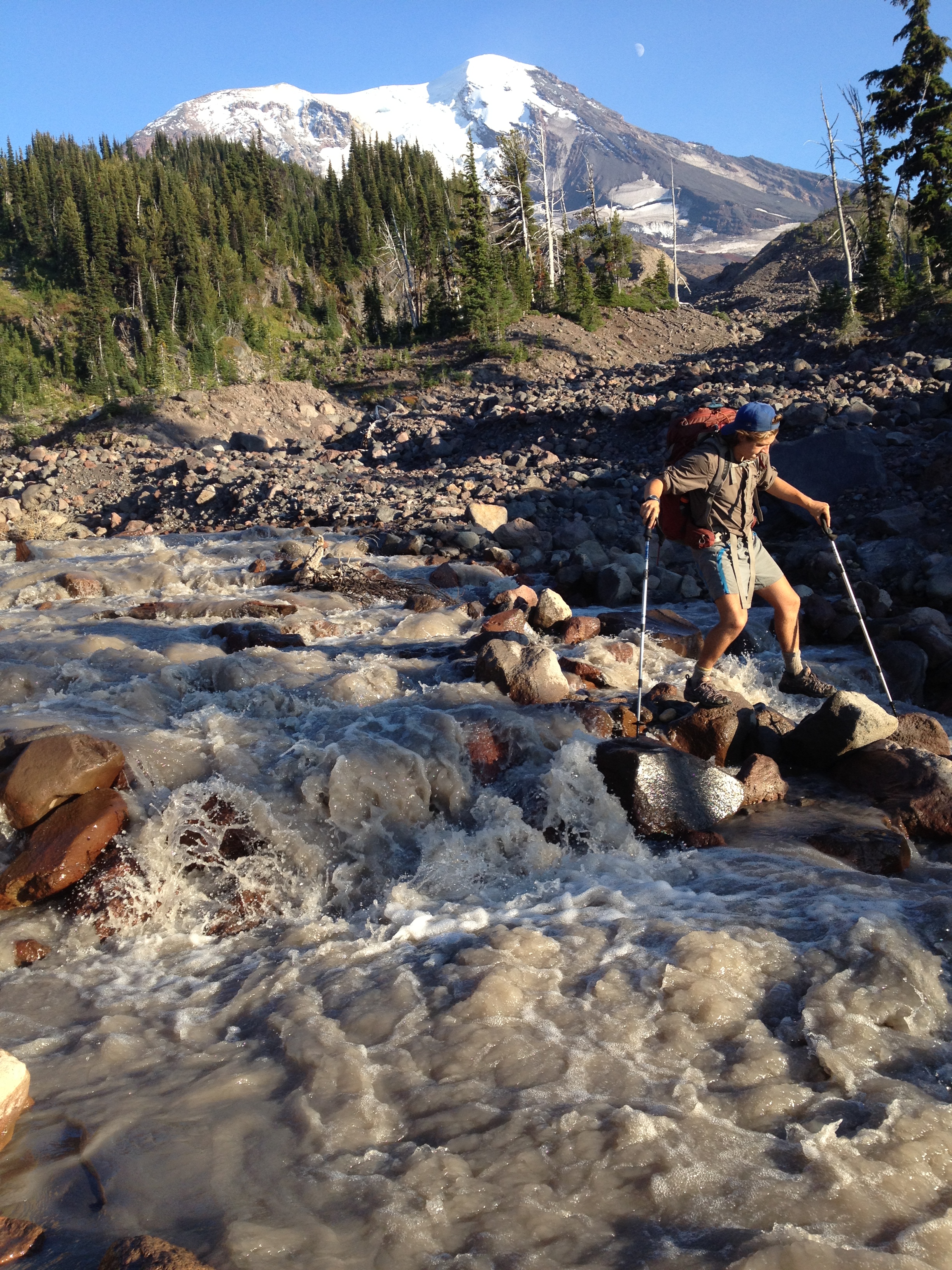 Day 116 brought with it views of Mt. Adams galore. We approached the barren south side and skirted around her west face, crossing many a river in the process. At one point we were only three miles from the 12, 281 ft. summit. Had we the time, energy, or will, It would have been a glorious day to climb. The north face of Mt. Adams was almost completely covered in snow and looked much more like the mountain I was used to seeing from the Tacoma area. The day was splendid, as we soaked up the Washington beauty.