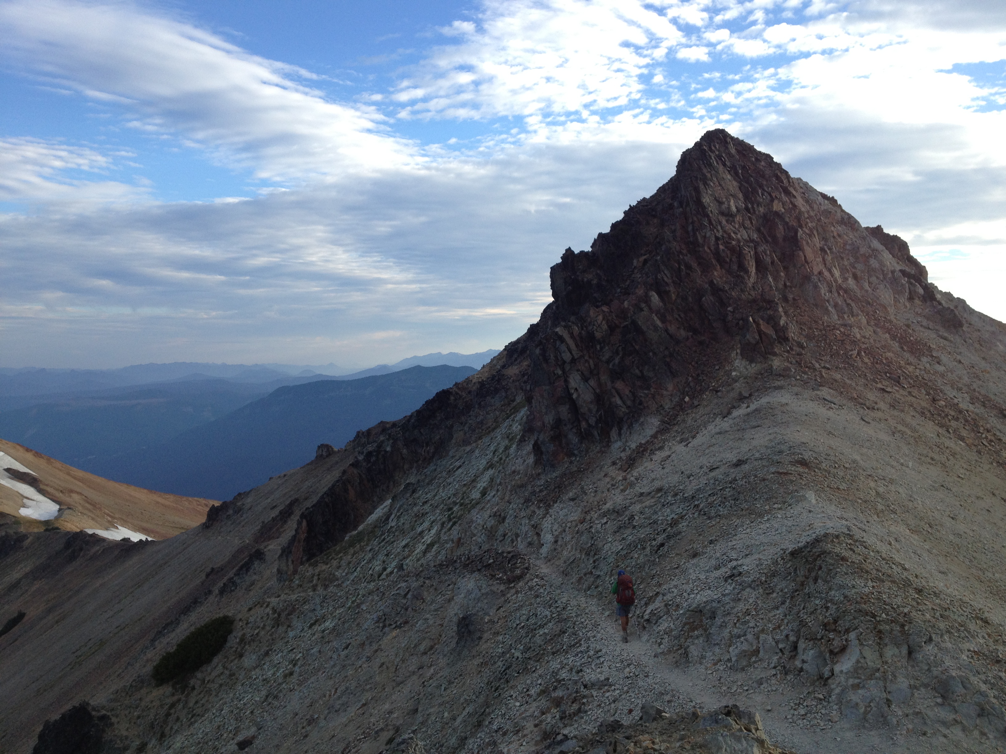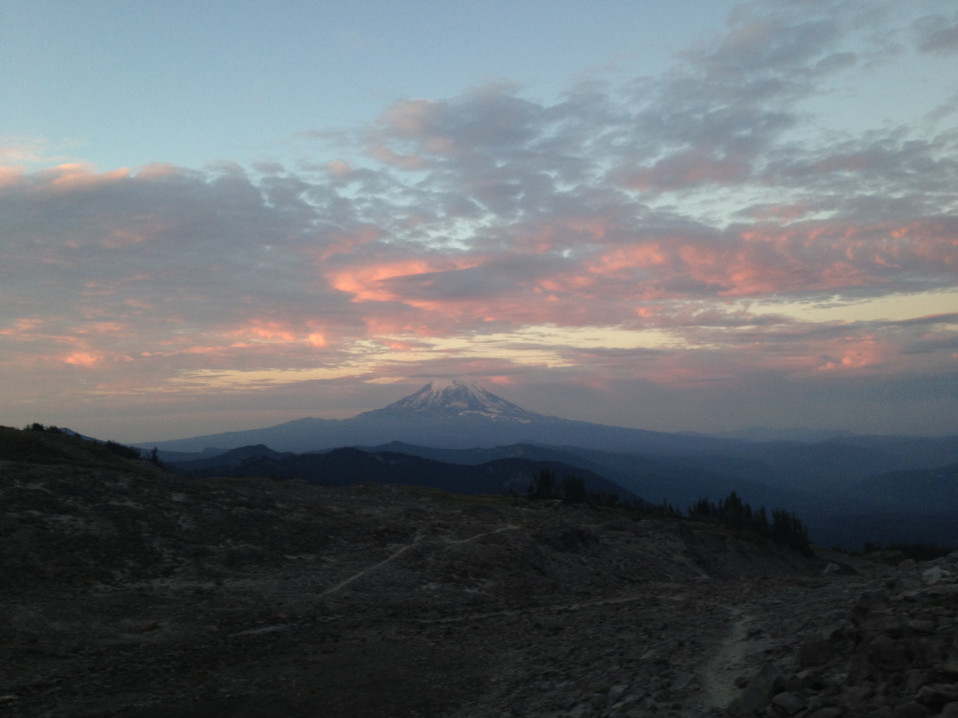 The next chapter of Washington brought us the highlight of our trip so far: the Goat Rocks. We walked from Snowgrass Flats over the Knife’s Edge just as the sun was rising and were treated to a pink and purple alpenglow on both Rainier and Adams.