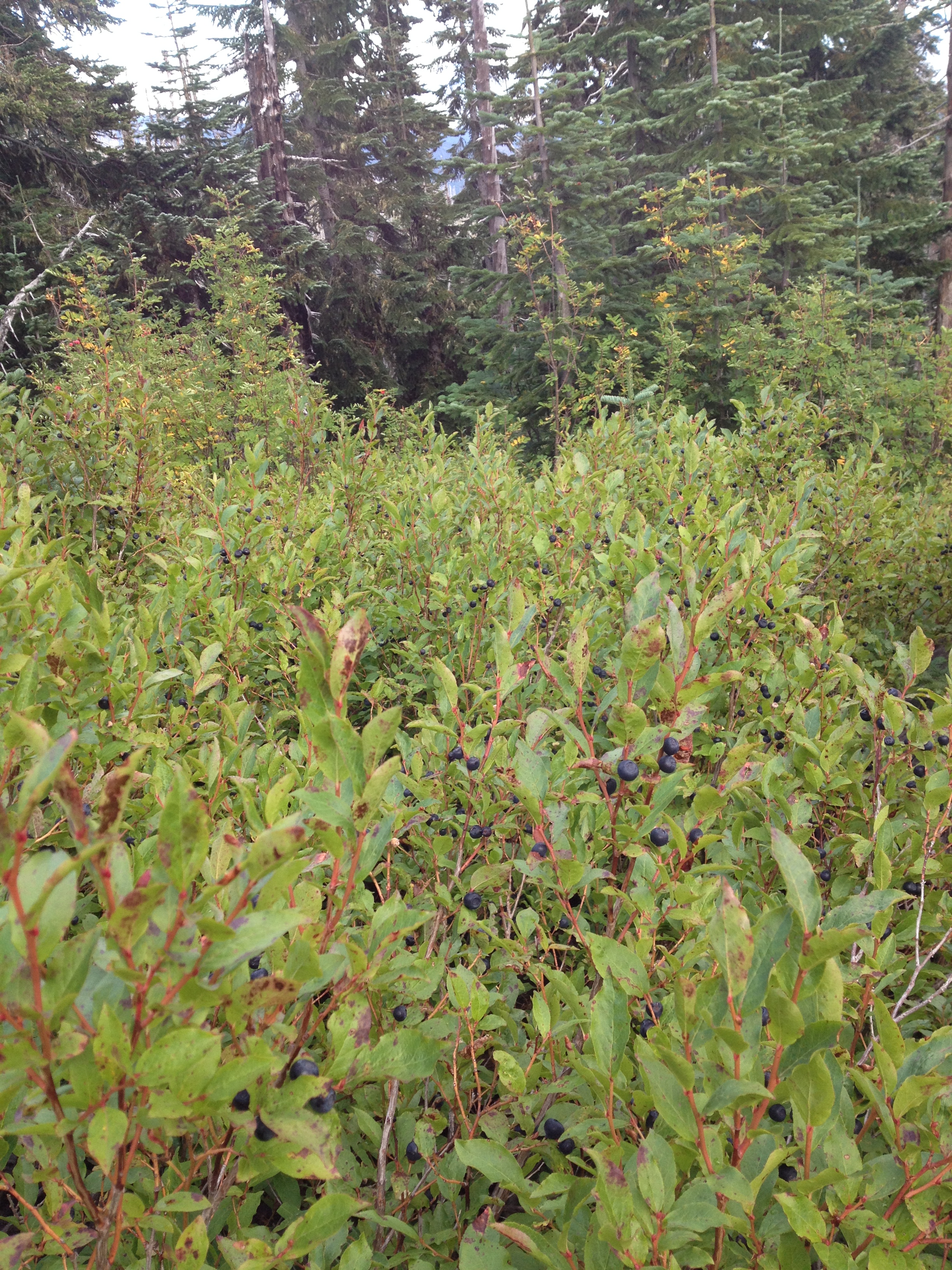 We’d heard mixed reviews about the White Pass to Snoqualmie section; beautiful views of Rainier, but lots of hiking through logged forests. Unfortunately, we had an experience similar to the one we had in Jeff Park. Rainier was nowhere to be seen. For 100 miles we hiked in and out of the clouds and rain. We even made it into the boundaries of Mt. Rainier National Park without once seeing our glorious mountain. However, we barely noticed the lack of view due the bounty of huckleberries that lined the trail almost the whole way through this section. It was a constant struggle of will power to keep on going and not stop for hours to pick. There was always a bush with more berries, bigger berries, bluer, sweeter berries. We also discovered at least three different species of huckleberries along the trail, and became quite the connoisseurs of the subtle huckleberry flavor.